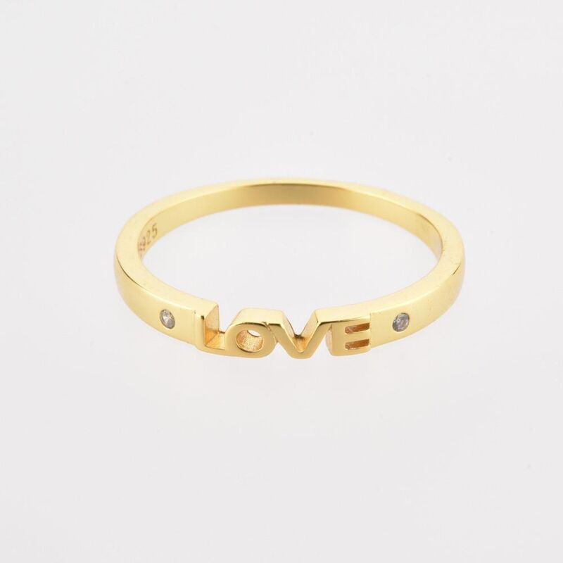 Anillo en plata 925 bañado en oro palabra LOVE y detalle de circonita