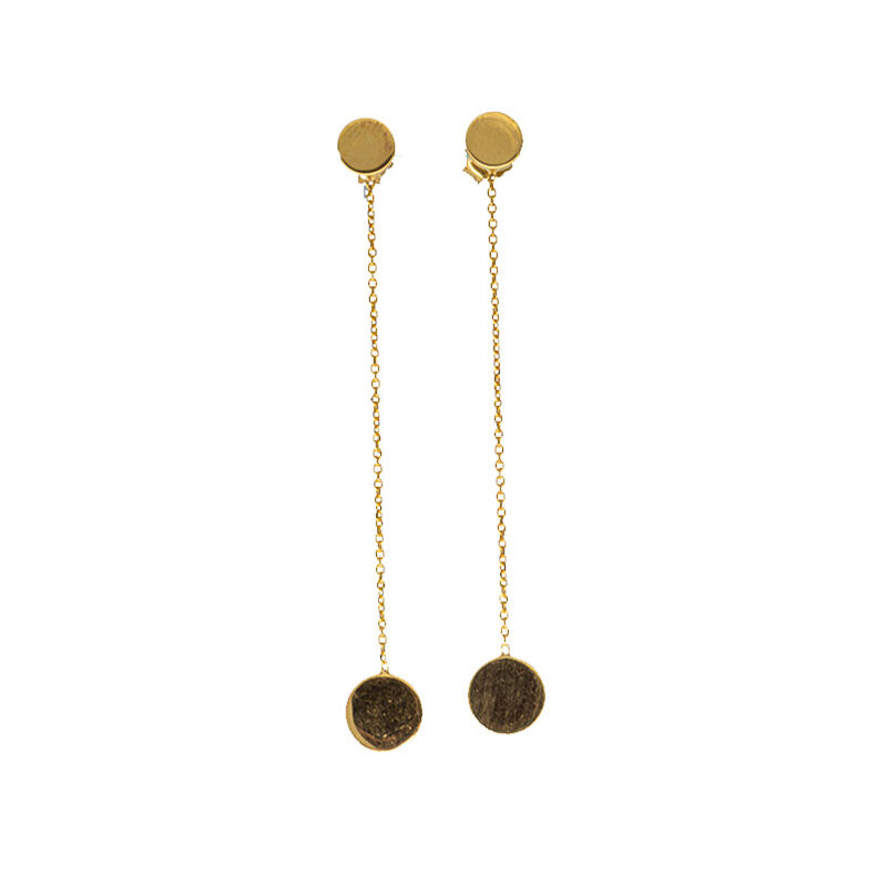 Pendientes largos en plata 925 bañada en oro y detalle de círculos planos