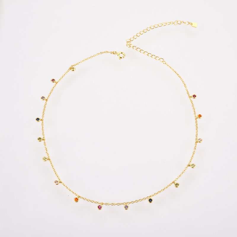 Colgante en plata 925 bañado en oro con circonitas de colores circulares