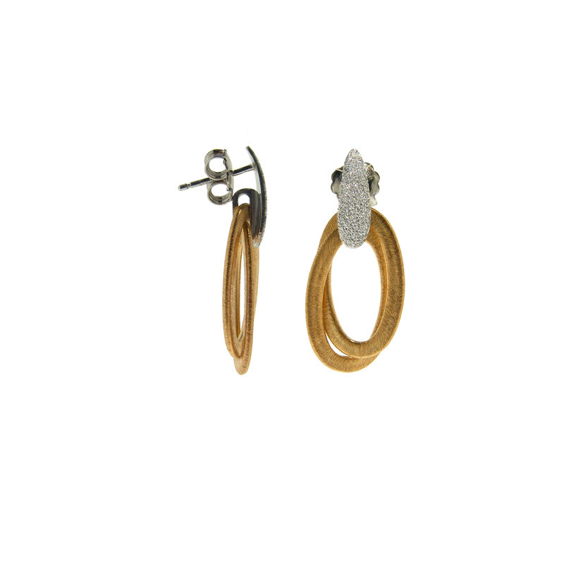 Pendientes largos en aros con cierre de tornillos a presión, tornillos en plata 925 rodiada y aros en plata con baño de oro 18 K