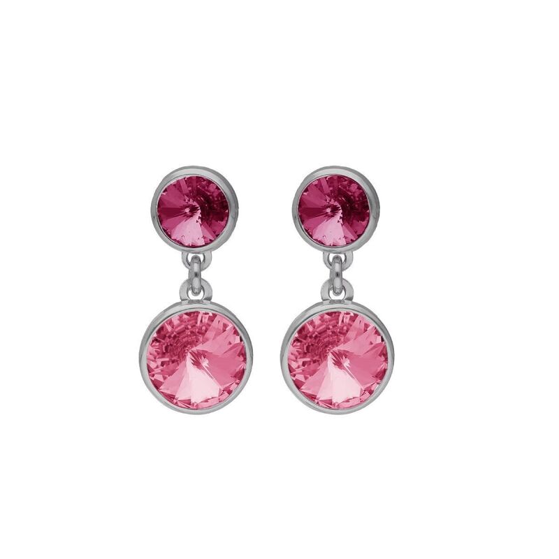 Pendientes en plata 925 con cristales redondos en tonos rosa