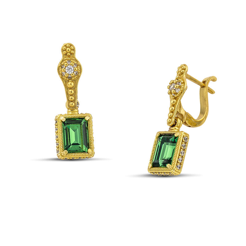 Pendientes en forma rectangular en plata 925 bañada en oro con circonitas
