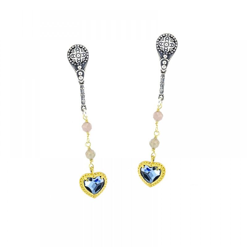Pendientes en plata 925 con cristal reversible en forma de corazón
