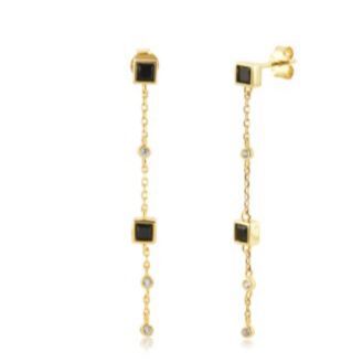 Pendientes largos en plata 925 bañada en oro con detalle de circonitas blancas y negras