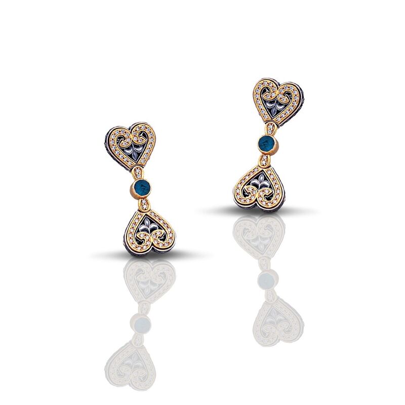 Pendientes en plata 925 bañado en oro con turquesa y diseño barroco