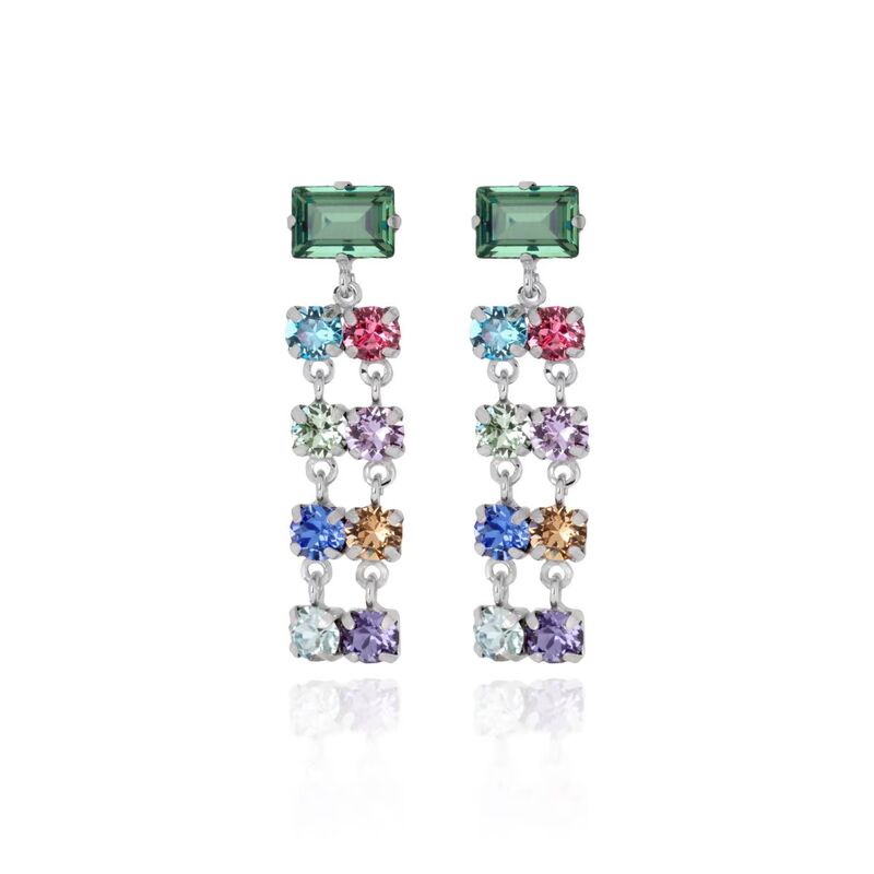 Pendientes en plata 925 con doble hilera de cristales de colores.