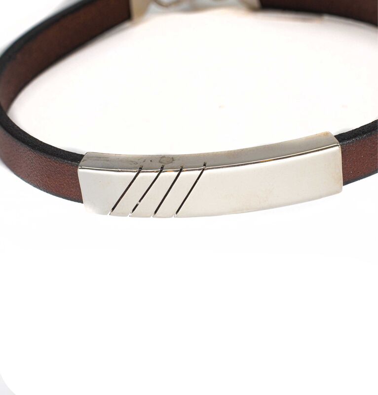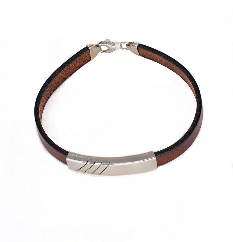Pulsera de cuero marrón y detalle barra 4 líneas en plata 925